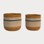 - Striped Handwoven Jute Bowl Style Storage Basket Set