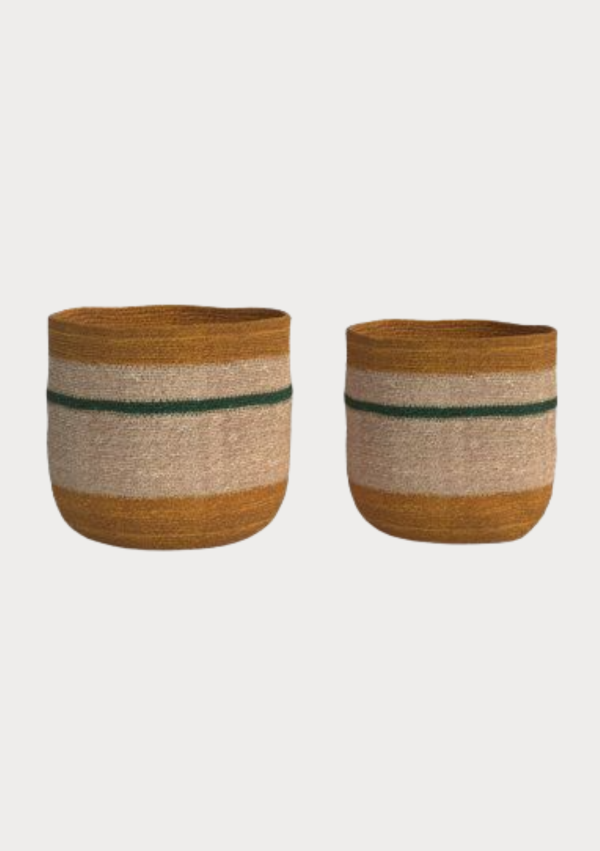 Striped Handwoven Jute Bowl Style Storage Basket Set