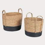 - Two-Tone Handwoven Jute Laundry Basket with Handles