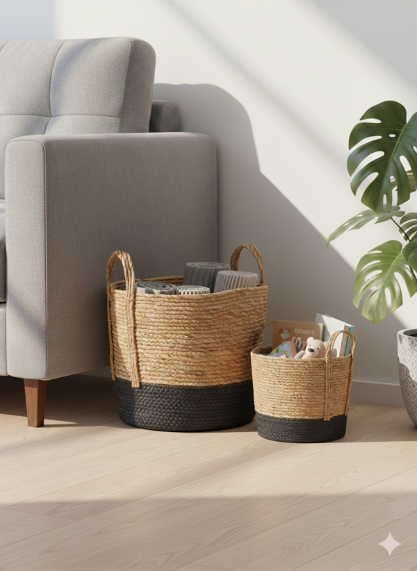 Each basket is individually hand-woven by skilled artisans, featuring a beautifully detailed texture that adds warmth, depth, and a handcrafted touch to your home décor.