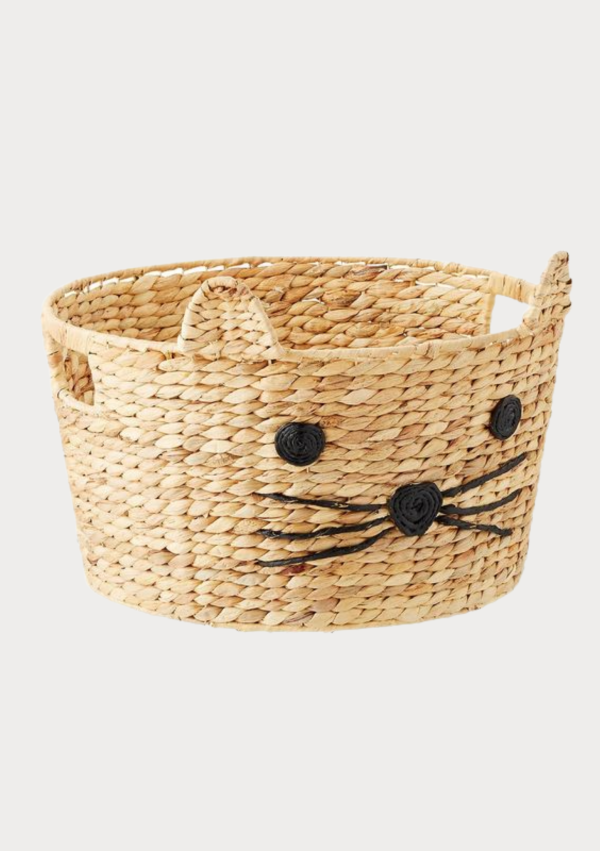 - Cute Cat Face Handwoven Jute Storage Basket