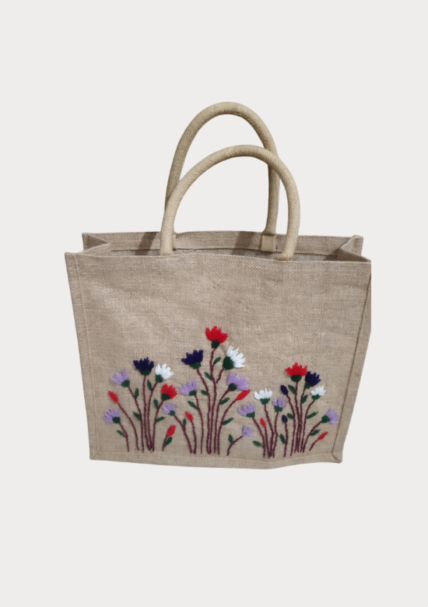 Handcrafted Embroidered Jute Tote Bag