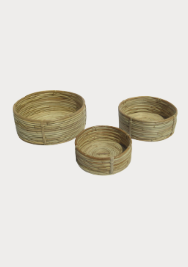 This round serving bowl set by Loom & Leather blends utility with natural aesthetics. The tightly woven base provides stability, while the raised rim keeps contents secure.